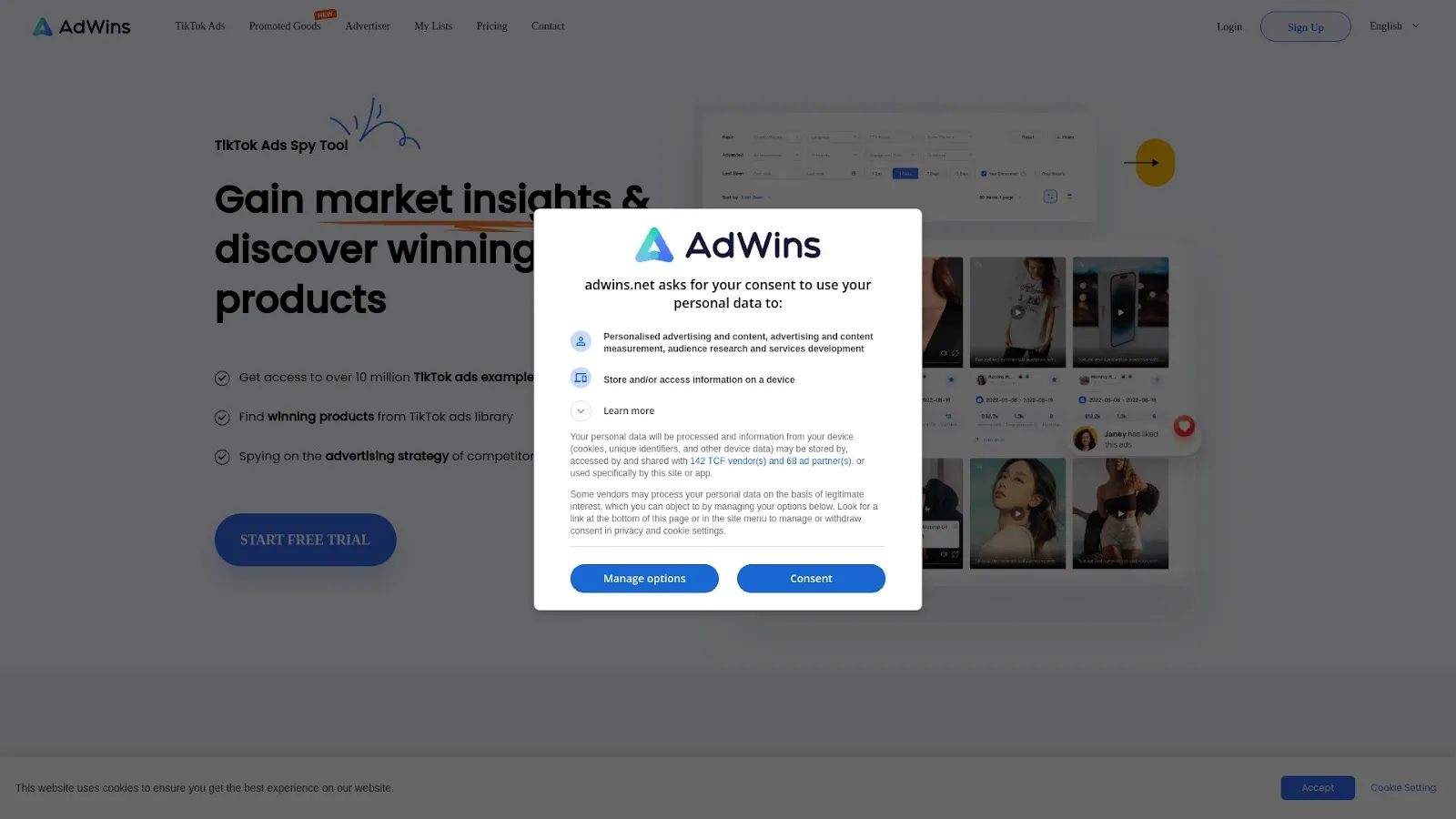 AdWins is a professional TikTok adspy tool that provides powerful features for people who want to find successful TikTok ads and analyze the strategies behind them. With AdWins, you get access to over 10 million TikTok ad examples, making it easy to get inspired and spot viral campaigns. Whether you are a marketer, a business owner, or simply interested in ad research, AdWins can help you keep up with competitors and discover trending products. You can also try AdWins for free—no credit card is needed. This gives you a chance to explore its functions before deciding to upgrade your plan.