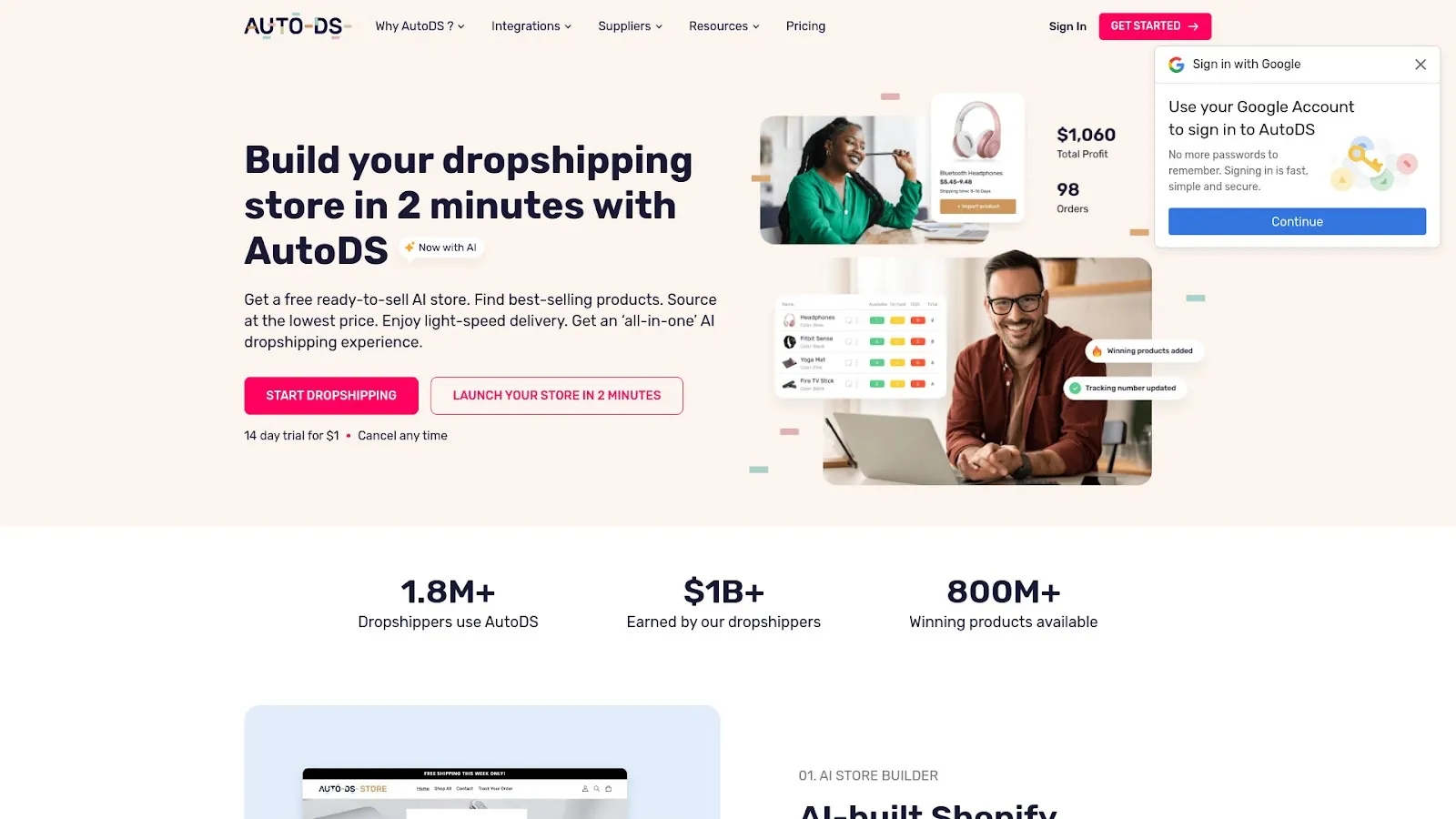 AutoDS is designed for all experience levels, offering free step-by-step courses and a user-friendly dashboard.